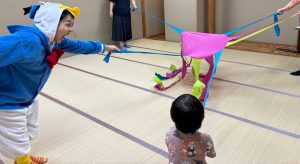 ちんどん屋さんの前から、”リズム”にのってお友達とダンス!